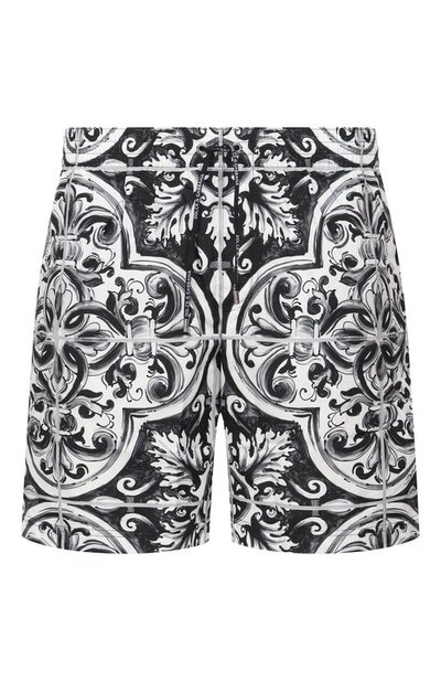 Плавки-шорты с принтом Majolica выполнили из быстросохнущего полиэстера. Модель с сетчатым подкладом и регулируемым эластичным поясом-кулиской дополнили боковыми карманами и задним с молнией и брендированным патчем.