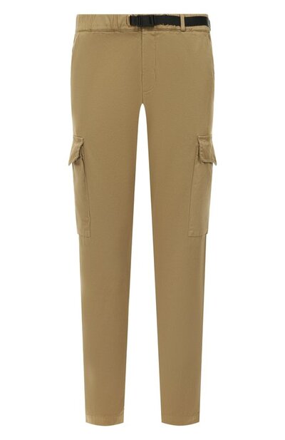 Брюки из хлопка стрейч станут основой непринужденного повседневного образа. Модель дополнили боковыми и задними карманами, а также парой крупных карго. Посадку изделия можно отрегулировать контрастным ремешком на фастексе, пропущенном сквозь эластичный пояс-кулиску.