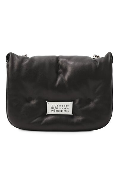 Стеганую сумку Glam Slam с ремнем-цепочкой и внешним карманом, скрытым магнитным клапаном, выполнили из зернистой наппы. Аксессуар украсили патчем с фирменным числовым кодом.