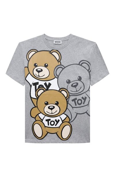 Для создания футболки дизайнеры марки использовали мягкий хлопковый трикотаж, идеально пропускающий воздух. Материал изготовили из нитей разных тонов — так получился выразительный меланжевый эффект. Переднюю панель украсили принтом в виде трех плюшевых медведей, которые не хуже логотипа говорят о принадлежности изделия марке.