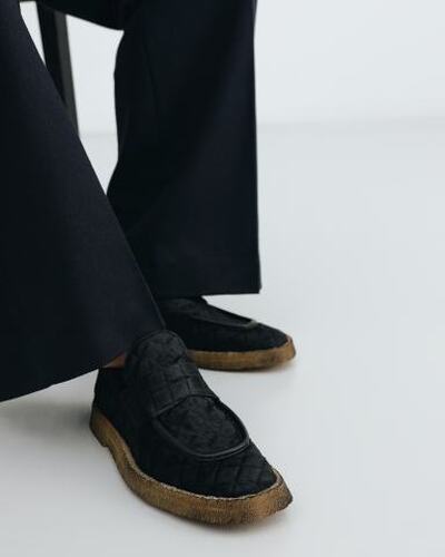 Лоферы Rocco P. в ромбовидную строчку выполнены из тактильной кожи с фактурой ворса пони. Носочная часть очерчена швом и украшена декоративной перемычкой. Подкладка и стелька из натуральной кожи адаптируются к форме стопы, обеспечивая оптимальную посадку. Контрастная акцентная подошва изготовлена из легкого каучука.