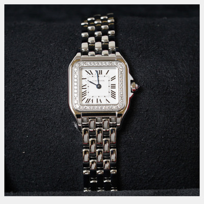The Panthère is more than a watch — it is a piece of jewelry in motion. With its silky links and clean white face, it wraps around the wrist like a second skin. Feminine, timeless, and unmistakably Cartier, this is an emblem of grace and precision that transcends seasons and generations.