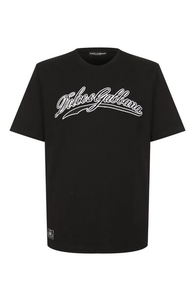 Футболку из хлопкового джерси декорировали контрастным вышитым логотипом. Внизу разместили небольшой патч с монограммой DG.