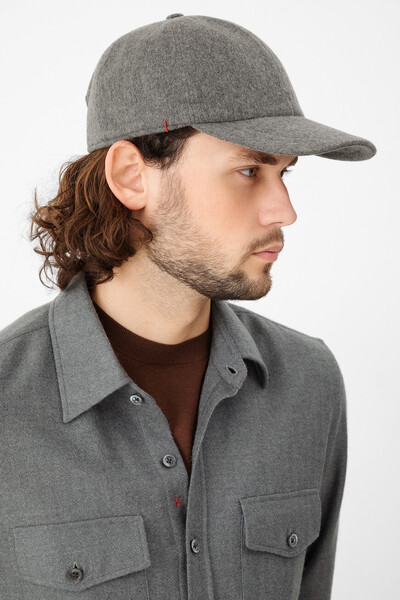 Серая бейсболка от Isaia традиционной формы шестиклинки. Для производства аксессуара выбран мягкий кашемир с характерной фактурой. На принадлежность изделия Дому указывают два ярко-красных стежка по бокам и вышитая коралловая ветвь слева на тулье. На подкладке тёмно-серого цвета также присутствует культовый мотив.