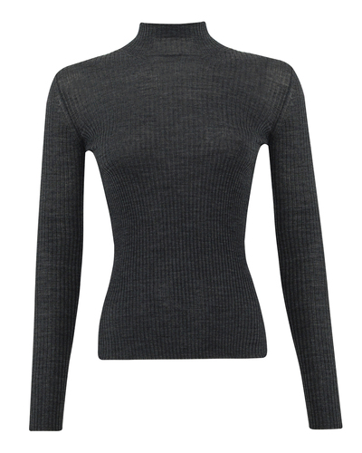 Эта водолазка — истинное воплощение минимализма и изысканности, выполненная из эластичной ребристой ткани, которая идеально облегает фигуру, подчеркивая ее изгибы. Глубокий графитовый цвет добавляет изделию универсальности и позволяет легко сочетать его с разными элементами гардероба. Высокий воротник плотно прилегает к шее, создавая утонченный и элегантный силуэт, который придает образу строгость и сдержанность. Длинные рукава визуально удлиняют руки и добавляют шарм. Тонкость и легкость материала обеспечивают комфорт в носке, позволяя коже дышать, сохраняя тепло в прохладные дни. Плавные швы и аккуратная обработка краев свидетельствуют о высоком уровне мастерства исполнения и долговечности изделия. Эта водолазка станет базовым элементом любого гардероба, идеально подходя для многослойных образов или самостоятельного ношения, добавляя нотку утонченной элегантности в любой наряд.
