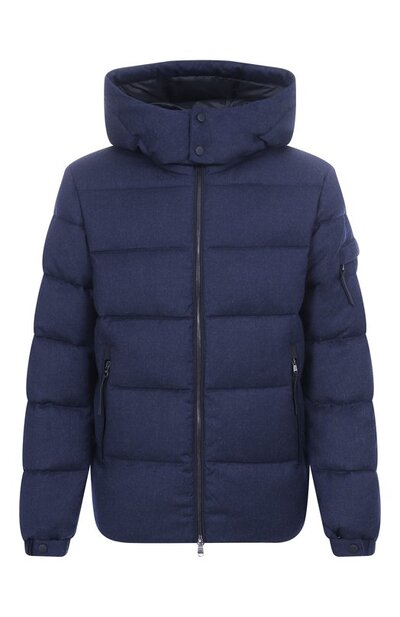 Стеганую куртку Kirill на утином пуху выполнили из шерстяной ткани. Модель с регулируемыми манжетами на кнопках и съемным капюшоном дополнили боковыми и нарукавным карманами с молниями.