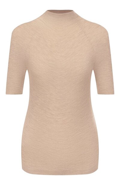 Облегающий пуловер Faleri связали узором в рубчик из мериносовой шерсти первого пострига. На спинке модель с рукавами реглан и цельнокроеным воротом украсили брендированной пластиной.