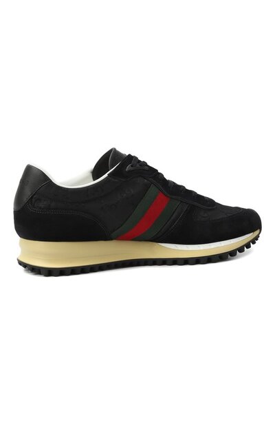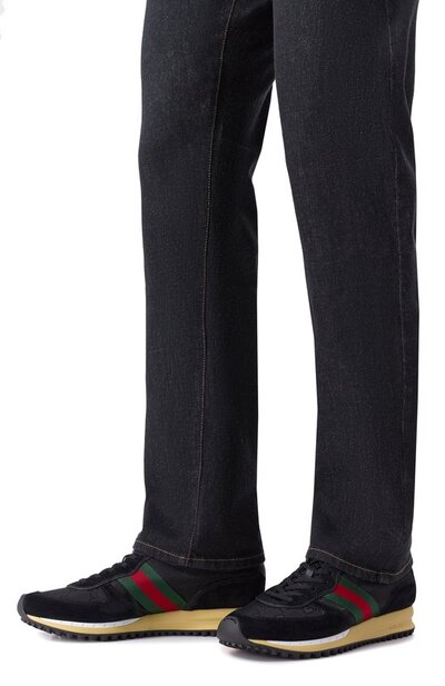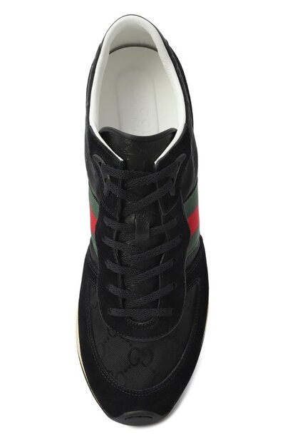 Кроссовки Re-Motion из канваса Original GG укрепили накладками из замши и кожи. Модель с лентами Web по бокам украсили тисненым логотипом на заднике и рельефным на широкой подошве, состаренной вручную.
