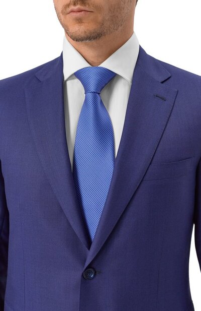 Галстук с графичным микроузором, выполненный в технике семи сложений, может стать акцентной деталью образа. Длины аксессуара из эластичного шелка хватит для экспериментов с узлами любой сложности.