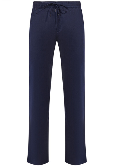 Брюки Zilli в насыщенном темно-синем цвете, который напоминает о таинственной глубине вечернего неба, подчеркивают стиль и безупречный вкус личности, которая их носит. Модель характеризуется расслабленным кроем, предлагая свободу движений и исключительный комфорт. Утонченный шнурок на талии и металлические брендированные эглеты добавляют элемент роскоши и функциональности, позволяя легко регулировать посадку по фигуре. Ткань обладает приятной на ощупь текстурой, что свидетельствует о выборе высококачественных материалов и мастерстве марки Zilli.