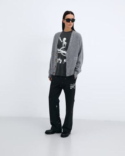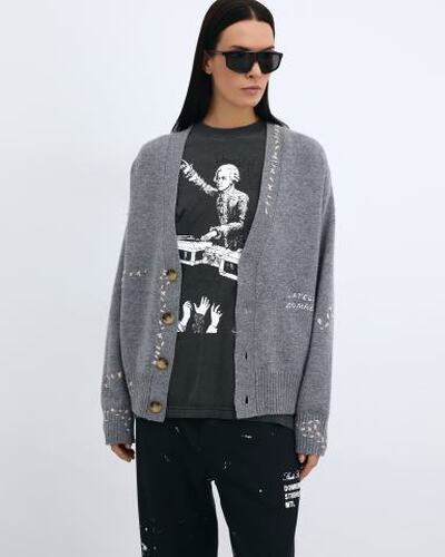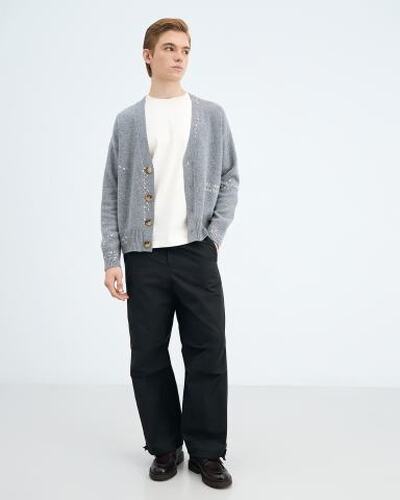Кардиган Office Trigger от DOMREBEL выполнен из шерстяной пряжи 7-го калибра и мягкого хлопка. Такая ткань приятна к телу, а за счет воздухопроницаемости и теплоизоляции комфортно ощущается в любое время года. Модель дополнена деталями ручной работы, которые были связаны крючком, и фирменной вышивкой «Atelier DOMREBEL» спереди. Застегивается на роговые пуговицы.