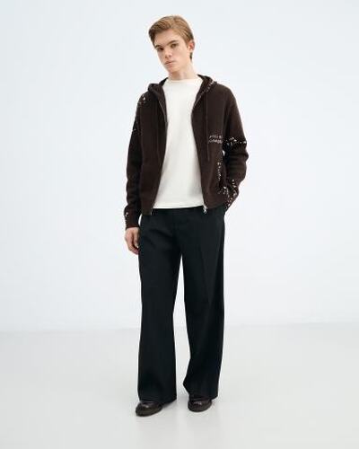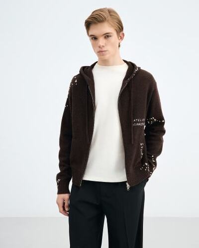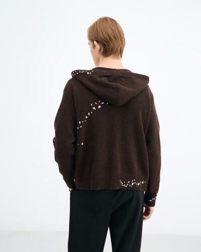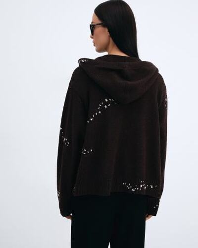 Джемпер с капюшоном на завязках Office от DOMREBEL выполнен из шерстяной пряжи 7-го калибра и мягкого хлопка. Такая ткань приятна к телу, а за счет воздухопроницаемости и теплоизоляции комфортно ощущается в любое время года. У изделия двойная застежка-молния и карманы-кенгуру. Модель дополнена деталями ручной работы, которые были связаны крючком, и фирменной вышивкой «Atelier DOMREBEL» спереди.