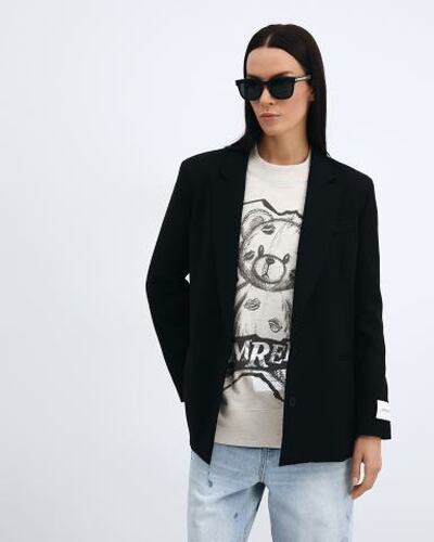 Жакет Hinnominate выполнен из эластичной ткани с добавлением района — экологичного материала, который красиво струится и на ощупь напоминает шелк. У модели свободный прямой крой и расслабленная посадка. Изделие дополнено боковыми карманами. Застегивается на две пуговицы. Рукав украшен нашивкой с фирменным логотипом бренда.