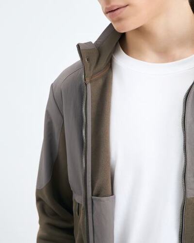 Толстовка Jango из линейки Rescue Fleece от Parajumpers выполнена в комбинированном дизайне. Модель изготовлена из хлопково-полиэстерового флиса с диагональной структурой на спинке и дополнена вставками из микрооттоманового нейлона с матовой отделкой. Застегивается на молнию. У модели ребристые манжеты и низ, а также два кармана на молнии. Изделие украшено принтом и нашивкой Parajumpers, оранжевым спасательным пуллером на рукаве и культовой желтой тесьмой на горловине.