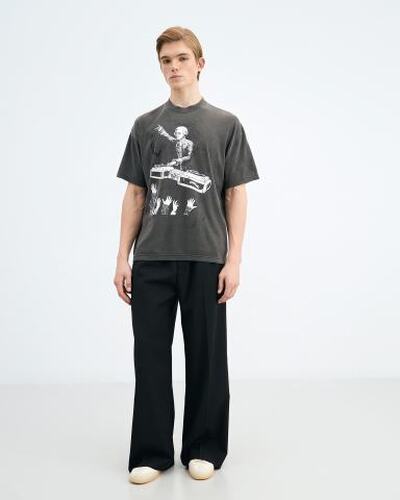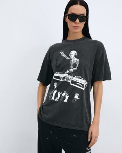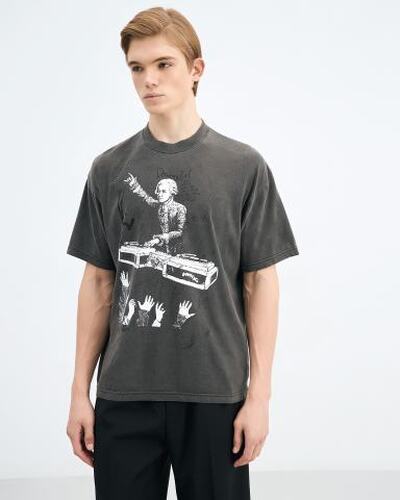 Культовая футболка Mozart от DOMREBEL с винтажным эффектом выполнена из хлопка, изготовленного на заказ в Канаде. Оригинальные рисунки нанесены вручную методом шелкографии — трафаретной печати. Модель с высоким и аккуратным ребристым вырезом, а также небольшим спуском на плече для оптимальной посадки. Крой стандартный, соответствует размеру.