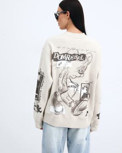Толстовка High Low от DOMREBEL выполнена из канадского хлопкового френч-три с петельной изнанкой. По всей длине нанесены фирменные рисунки студии DOMREBEL методом шелкографии — трафаретной печати. Крой стандартный, соответствует размеру.