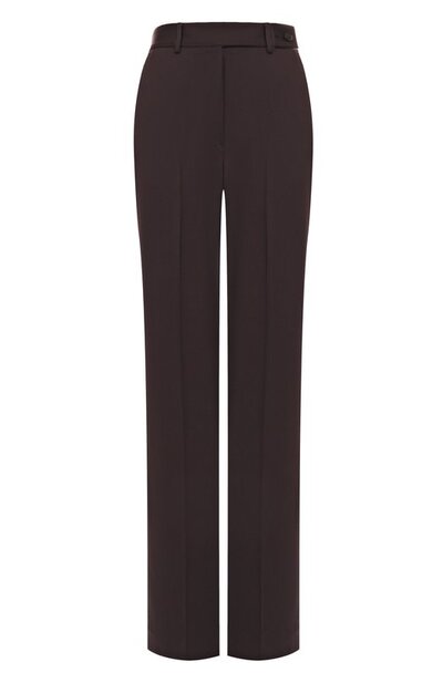 Прямые брюки с высокой посадкой и стрелками органично дополнят базовый гардероб. Для создания модели с четырьмя карманами выбрали костюмную шерсть с добавлением эластана.