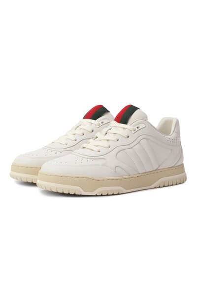 Кеды Re-Web с перфорированным узором выполнили из кожи. Модель на протекторной подошве, со стегаными полосами по бокам украсили лентой Web на язычке и брендированной аппликацией на заднике.