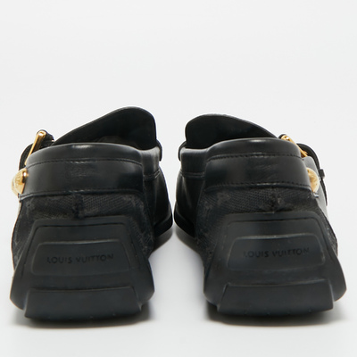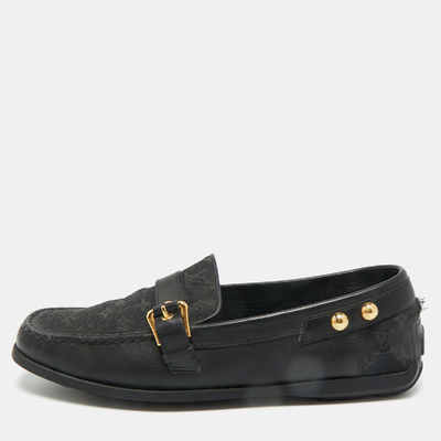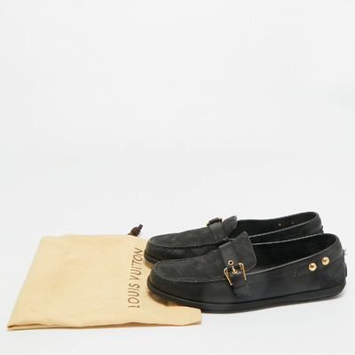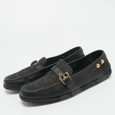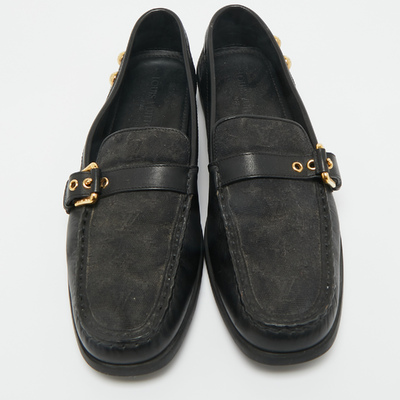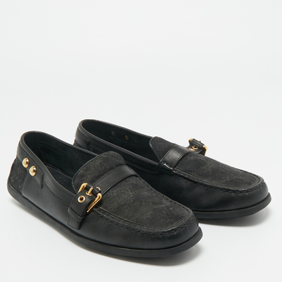 Look sharp and neat with this pair of loafers from Louis Vuitton. They have been crafted from canvas along with leather and designed with the art of fine stitching and the buckle on the uppers. The pair is complete with comfortable insoles and leather outsoles.