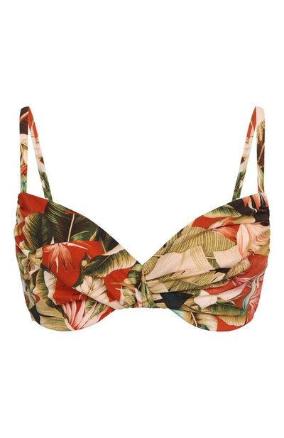 Бра-топ из коллекции Elements выполнили из полиамида стрейч с растительным мотивом, украсив изделие спереди драпировкой. Модель с чашечками на косточках и регулируемыми бретелями дополнили брендированной застежкой сзади.