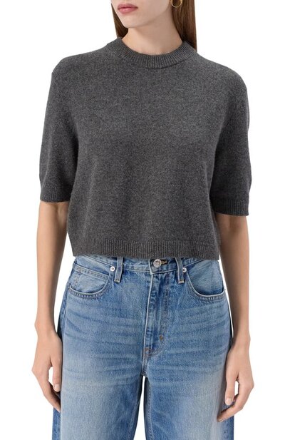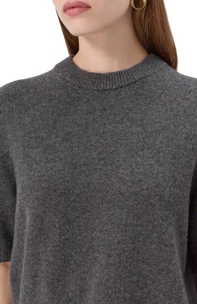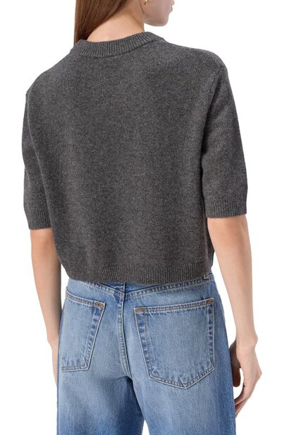 В капсульную коллекцию GI вошел укороченный пуловер Aurora из чистого кашемира. Модель с рукавами до локтя дополнили горловиной, манжетами и поясом в рубчик.