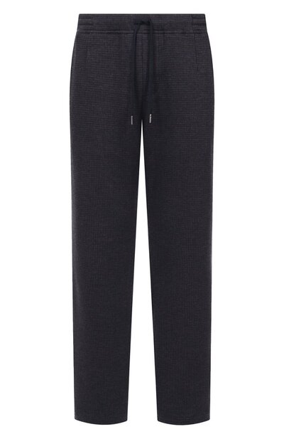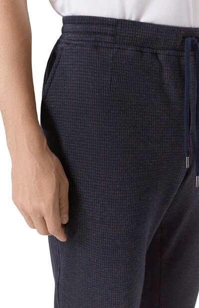 Брюки с эластичным поясом-кулиской дополнили тремя карманами. Модель в клетку «пепита» изготовили из хлопка с небольшим добавлением нейлона.