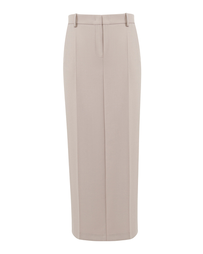 Эта юбка воплощает классическое изящество и современную утонченность, выполненная в нежном бежевом оттенке, она излучает лёгкость и мягкость. Формат юбки «карандаш» придает фигуре стройность и изящность, создавая элегантный и сдержанный силуэт. Высокая посадка подчеркивает линию талии, визуально удлиняя ноги и придавая фигуре скульптурную выразительность. Это делает модель универсальной, подходящей для различных фигур. Передняя часть юбки украшена аккуратными защипами, которые добавляют текстурный акцент и придают изделию дополнительный объем, создавая игру света и тени. Элементы отделки включают в себя тонкие, едва заметные шлевки для ремня, позволяющие добавить дополнительный акцент или оставаться в минималистичной концепции. Застежка на молнии обеспечивает удобство и обеспечивает идеальную посадку. Эта юбка станет основной деталью гардероба для создания стильных и элегантных комплектов, прекрасно сочетаясь с разнообразными блузами и топами. Идеальна для офисных луков и более формальных мероприятий, она внесет нотку изысканности в каждый образ.