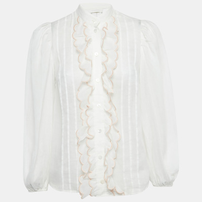 Zimmermann White Ramie Scallop Frill Detail Jude Shirt S 1213127 (белый, lpn30947594)