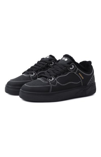 Кеды Osborn с перфорацией на союзке и внутренней отделкой из пушистой овчины выполнили из матовой кожи. Пару, прошитую контрастными строчками, декорировали логотипом сбоку и фирменными заклепками на язычке.