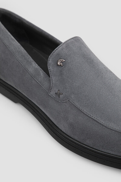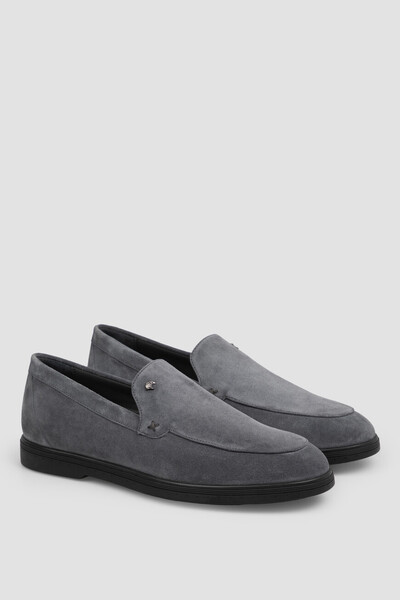 Лоферы Stefano Ricci с бархатистой текстурой. Для производства изделия с широкой колодкой выбрана мягкая серая замша. Конструкция удобной пары характеризуется наличием традиционного рельефного шва и резиновой подошвы с небольшим утолщением в области устойчивого каблука. Атрибутами Дома являются серебристая металлическая деталь с изображением орла Royal Eagle на язычке и культовая символика снизу на подошве. Модель обладает достаточной степенью формальности, чтобы вписаться и в образ для офиса с нестрогим дресс-кодом, и в комплект для городских улиц.