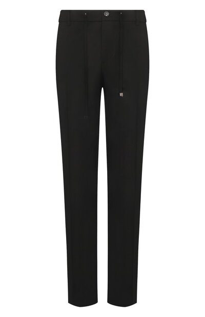 Слегка зауженные брюки Spiaggia со стрелками дополнили поясом-кулиской c эластичными вставками. Для пошива модели с тремя карманами, отделанными кантом из алькантары, использовали чистую шерсть.