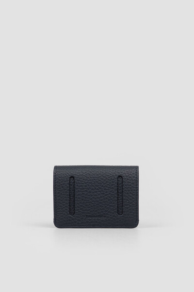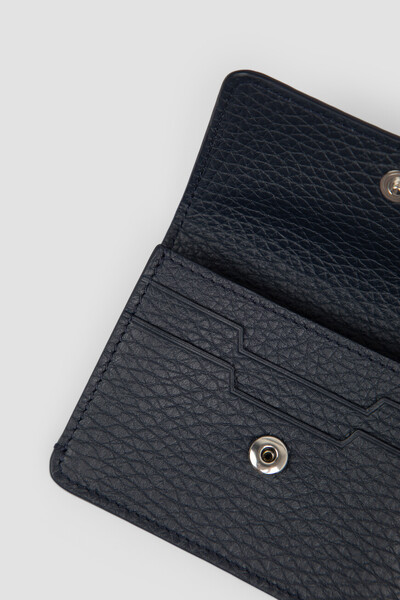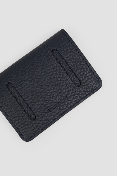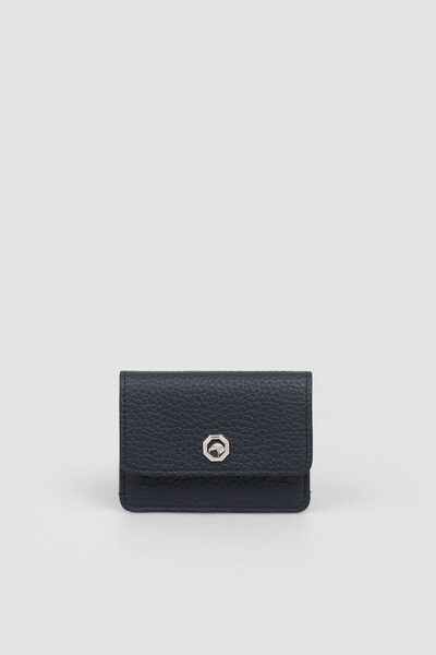 Тёмно-синий кардхолдер Stefano Ricci с культовой символикой Дома. Изделие выполнено из мягкой зернистой кожи телёнка, устойчивой к появлению потёртостей и царапин. Декором выступает деталь в виде головы орла, вписанной в восьмигранник, с отделкой из оцинкованного палладия, размещённая на откидном клапане спереди.