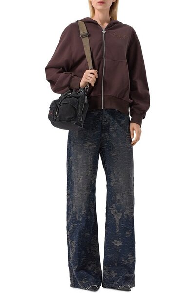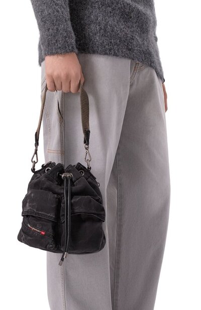 Сумку Multi-Pkts Bucket X с брендированной нашивкой спереди выполнили из хлопкового холста с полиуретановым покрытием. Модель со съемным плечевым ремнем дополнили тремя внешними и внутренним карманами.