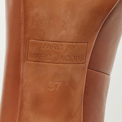 This structured silhouette from Marc by Marc Jacobs captures vintage inspired style with a modern attitude. The brown leather and high platform lend boldness and balance to your wardrobe rotation.