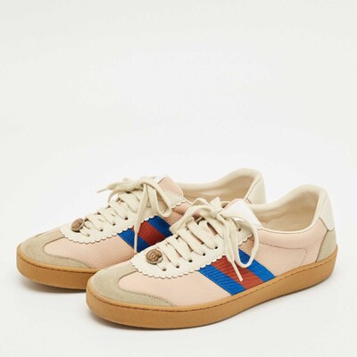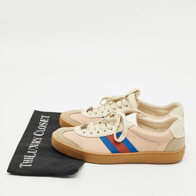 Gucci Multicolor Leather and Suede Web Lace Up Sneakers Size 38.5 1216852 (lpn30970681)
