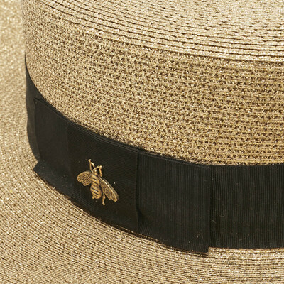 Gucci’s papier hat in shimmering gold lamé bends the light with every tilt of the brim. It evokes summer parties, seaside promenades, and golden hour afternoons, turning sun protection into a gesture of pure theatre while remaining soft enough to fold into a suitcase.