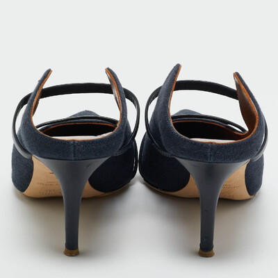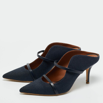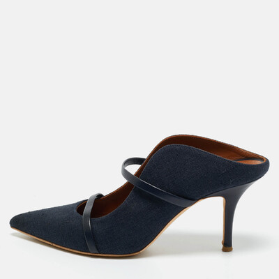 Malone Souliers Navy Blue Fabric and Leather Maureen Mules Size 40 1214618 (lpn30970852)