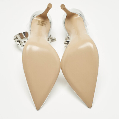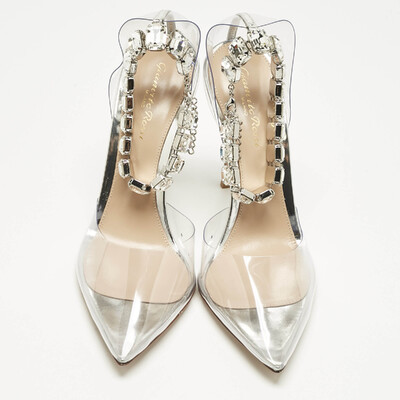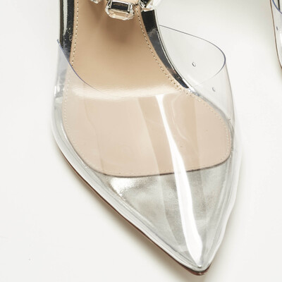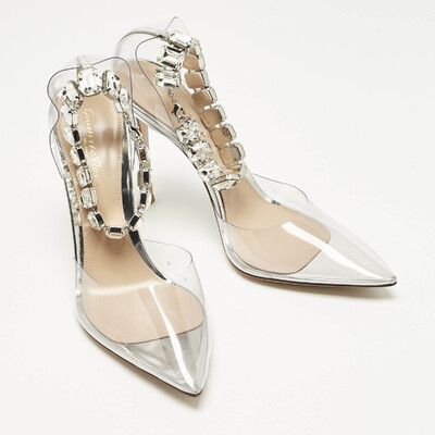 Transparent PVC wraps the foot like a whisper, while crystals glimmer like frozen starlight. These pre loved designer heels are perfect with layered skirts, evening gowns, or any outfit made for moments of magic.