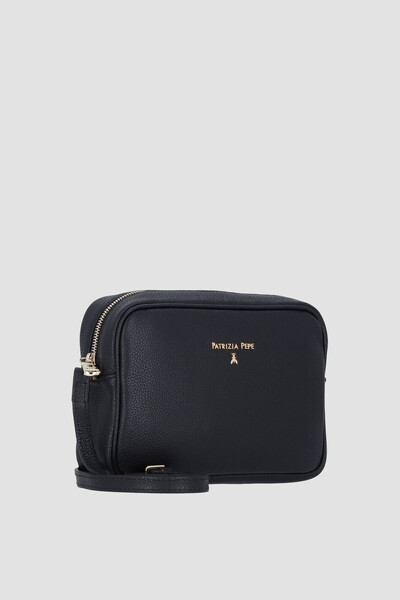 Сумка Patrizia Pepe застёгивается на молнию светло-золотого оттенка. Практичная модель изготовлена из мягкой зернистой кожи телёнка чёрного цвета. Внутри размещены одно просторное отделение и прямоугольный патч с надписью-логотипом Дома. Для удобства переноски в изделии предусмотрен регулируемый плечевой ремень.
