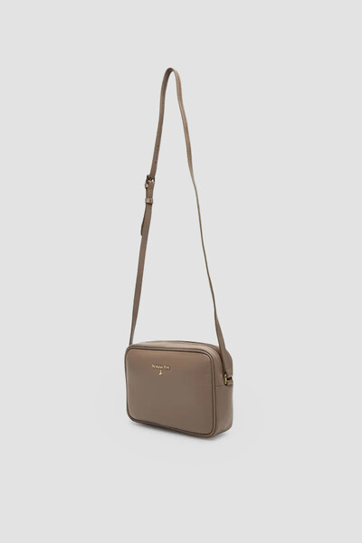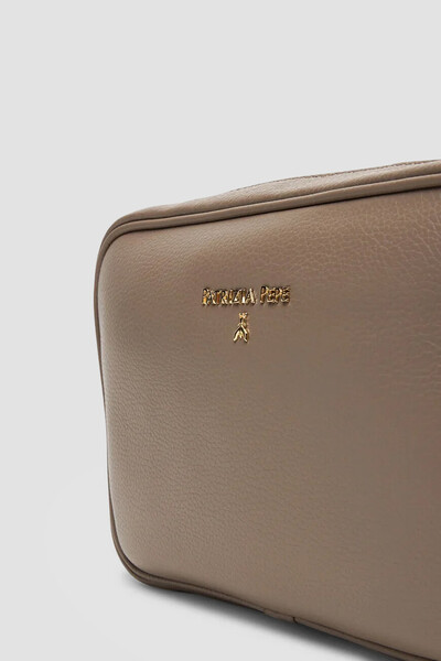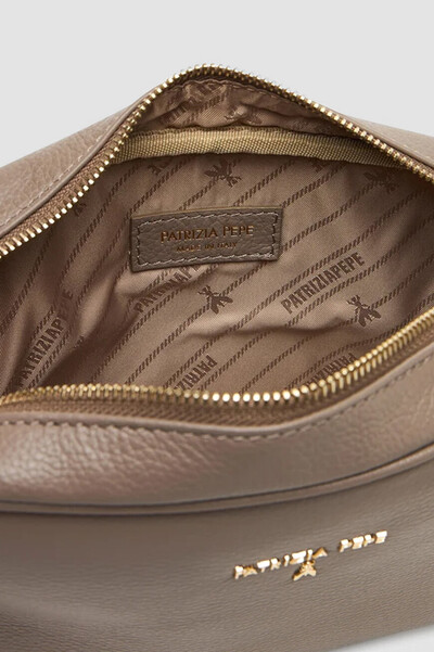 Функциональная сумка Patrizia Pepe с регулируемым плечевым ремнём для переноски. Компактный аксессуар выполнен из мягкой кожи телёнка с крупнозернистой текстурой. Атрибутами Дома являются золотистые металлические лого и символ Fly, расположенные на лицевой стенке.