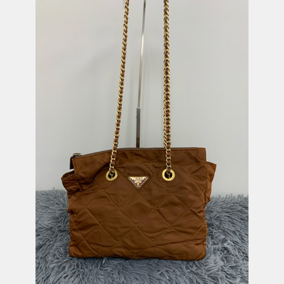 Prada Nylon Brown Chain Shoulder Bag 1219110 - 1