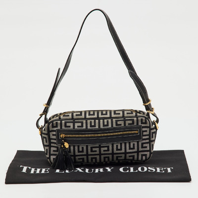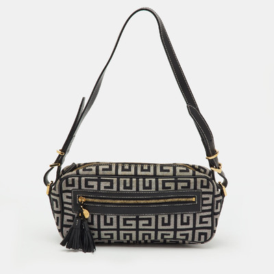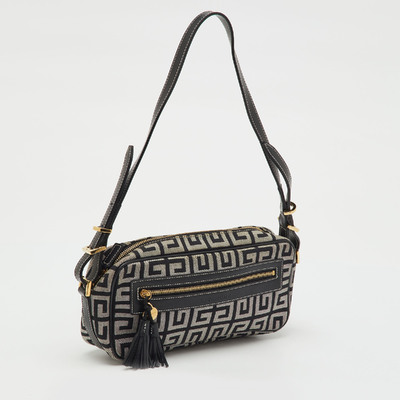 Tassels swing lightly as you move, recalling hotel lobbies and jazz bar nights. In black and grey monogram canvas with leather trim, Givenchy’s shoulder bag layers texture and movement over a slim silhouette, a piece that stays discreet while adding rhythm to every outfit.
