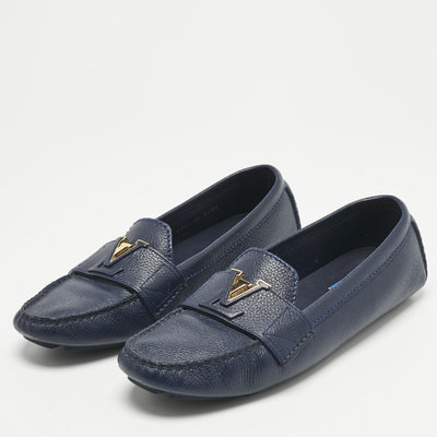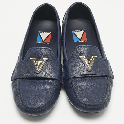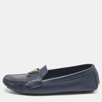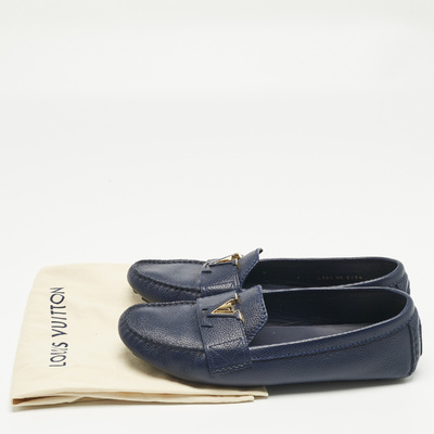 Louis Vuitton Navy Blue Leather LV Mare Loafers Size 38.5 1217661 (lpn30973845)