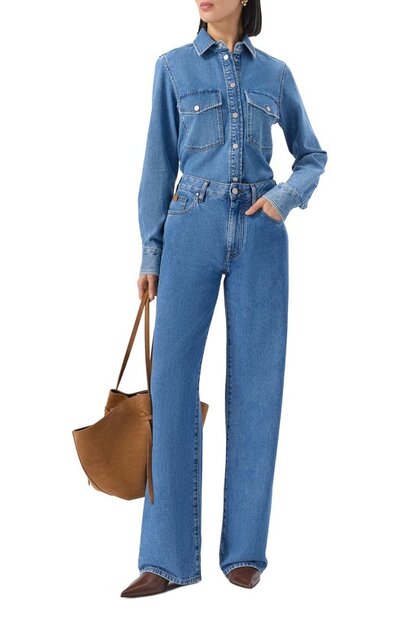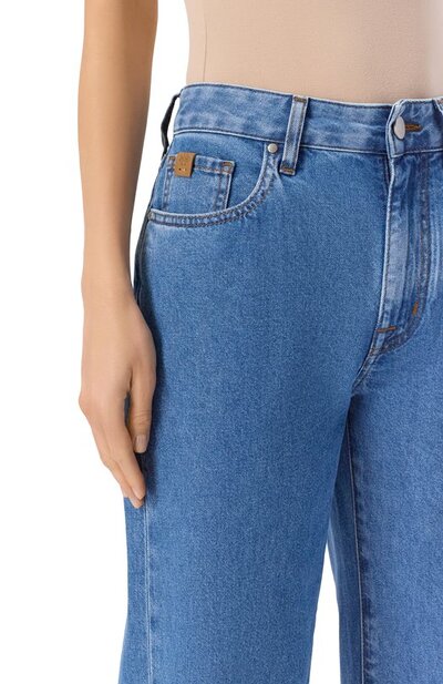 Джинсы Hailey прямого кроя выполнили из ароматизированного неэластичного денима. Модель украсили брендированным патчем на самом маленьком из пяти карманов и жакроном на поясе сзади.