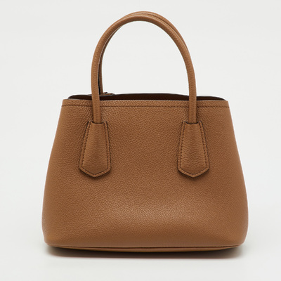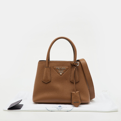 From the moment you pick it up, the Prada Mini Double Tote feels purposeful. Its brown leather is smooth and structured, holding essentials neatly in its compartments. Light enough to carry by hand or on the arm, it moves with you through the day, from errands to evening plans, with effortless style.