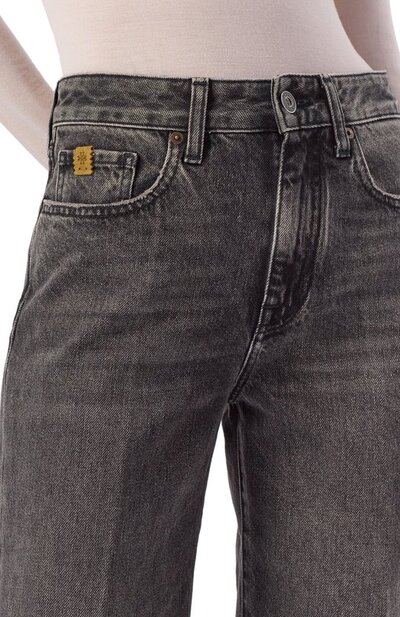Джинсы Jackie украсили нашивкой на одном из пяти карманов и замшевым жакроном с логотипом на поясе сзади. Брюки из денима плотностью 12 унций, сотканного из хлопка и лиоцелла, постирали с камнями.