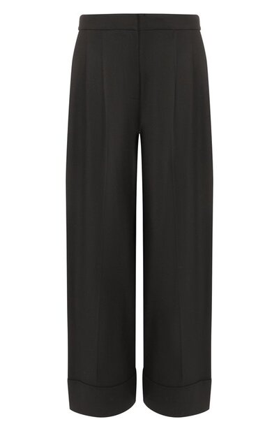 Для создания брюк Taniada кроя Relaxed fit использовали шерсть первого пострига. Модель с четырьмя карманами, защипами и стрелками застегивается молнией и потайным крючком.