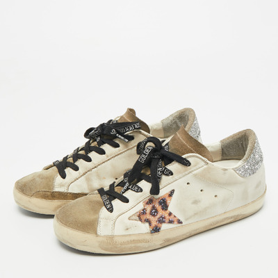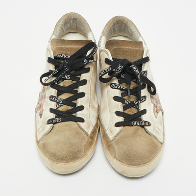 Golden Goose White Leather and Suede Superstar Lace Up Sneakers Size 37 1219681 - 1