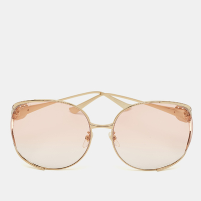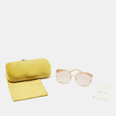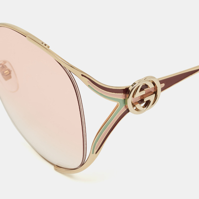 These Gucci sunglasses blend pink and gold tone gradient lenses in a generous oversized shape. The Interlocking G emblem at the temples adds a touch of house heritage without being obtrusive. The combination of colour and scale creates a modern yet feminine accessory that elevates everyday outfits and travel looks alike.