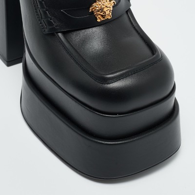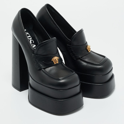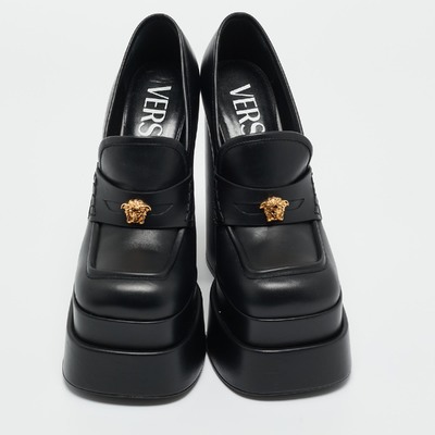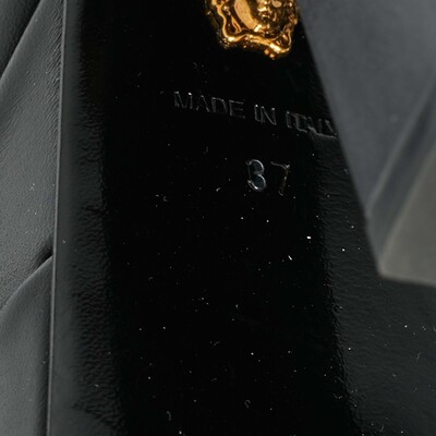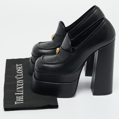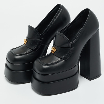 Versace’s Aevitas pumps are unapologetically bold, designed in sleek black leather with a towering platform silhouette. Infused with the house’s signature drama, they’re made for those who embrace statement luxury.